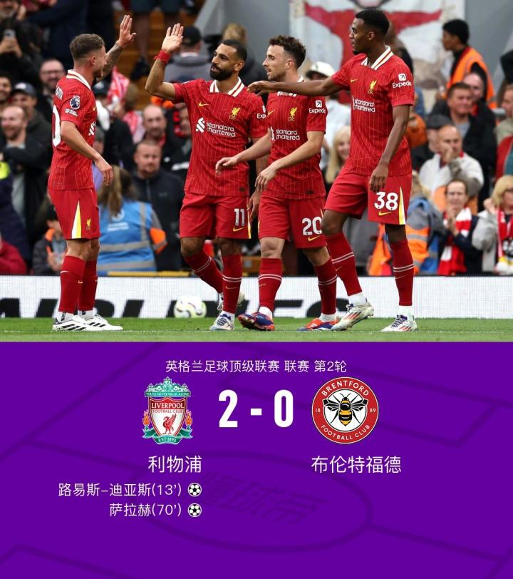 北京时间8月25日23:30,英超第2轮继续进行。利物浦坐镇主场安菲尔德球场迎战布伦特福德,球场上红军控球优势明显,反击实施迅速。比赛进行到第13分钟,利物浦完成精彩反击,迪亚斯左脚劲射破门,为球队取得1-0领先。这个进球也是迪亚斯在红军生涯的百场里程碑。